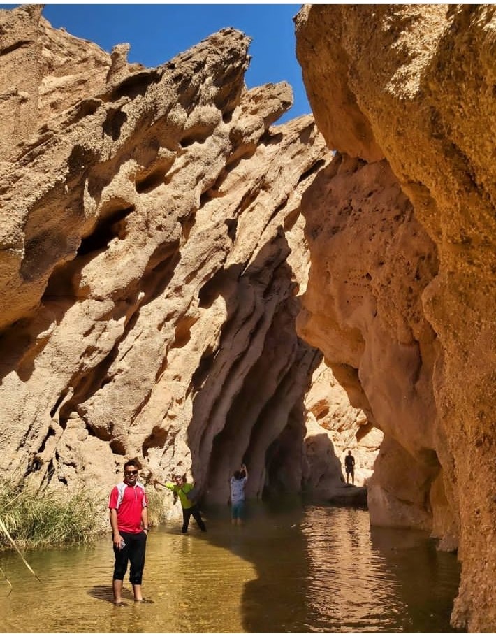 روز دوم پس از صرف صبحانه آماده میشیم و میریم به سمت کال جنی که یه طبیعت شگفت انگیز و باورنکردنی که بر اثر تغییرات شرایط آب و هوایی ایجاد شده. از لابلای دیواره های بلند خاکی رد میشیم از دل تونل های وهم انگیز عبور می کنیم تا میرسیم به رودخونه ای با آب ولرم و نیزارهای بلند. این شهر برعکس تصورات اشتباه ما که فکر می کنیم خشک هست ولی یکی از شهرهای پرآبی هست که میبینیم. توی کال جنی یه حوضچه فیروزه ای رنگ خوشگل هست که میتونیم اونجا کلی آب تنی کنیم و بعد از اون هم مسیر رو ادامه بدیم. در نهایت برسیم به یه سری دستکندهایی که درب ورودی آن ها در ارتفاعی فراتر از قد آدم هاست و داخل این دستکندها خونه هایی با دیوارهایی مرتفع هست که جز تاریکی و خاک چیزی به چشم نمیاد